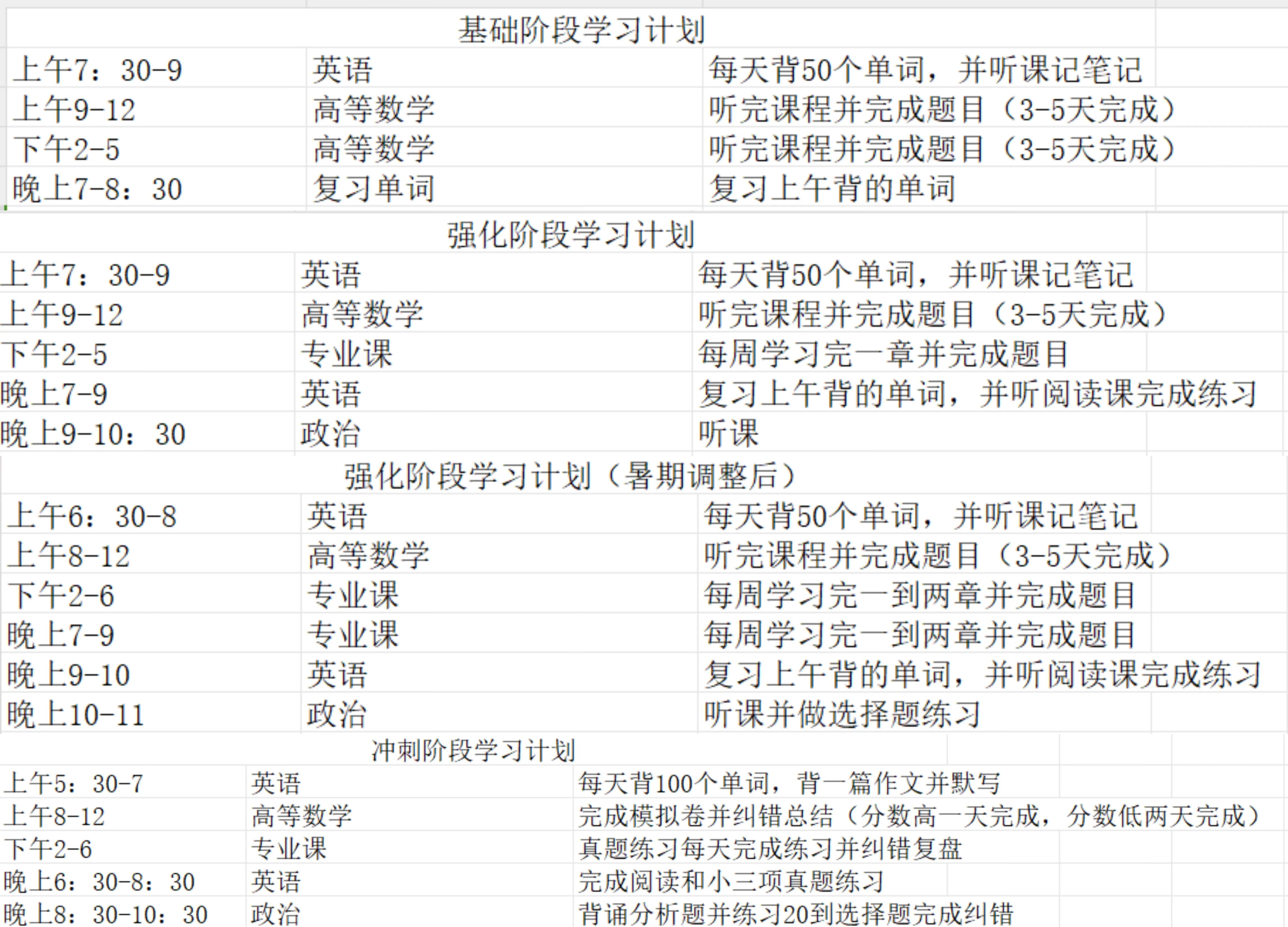 在冲刺阶段仍然是刷题,首先将基础和强化阶段的错题再做一遍,依然做错的那些就是目前没有掌握的知识点,再有针对性的对这些题进行训练,之后进行真题训练,在模拟卷出来之后就与真题穿插着做,基本两天一套卷子,一天做一天复盘。