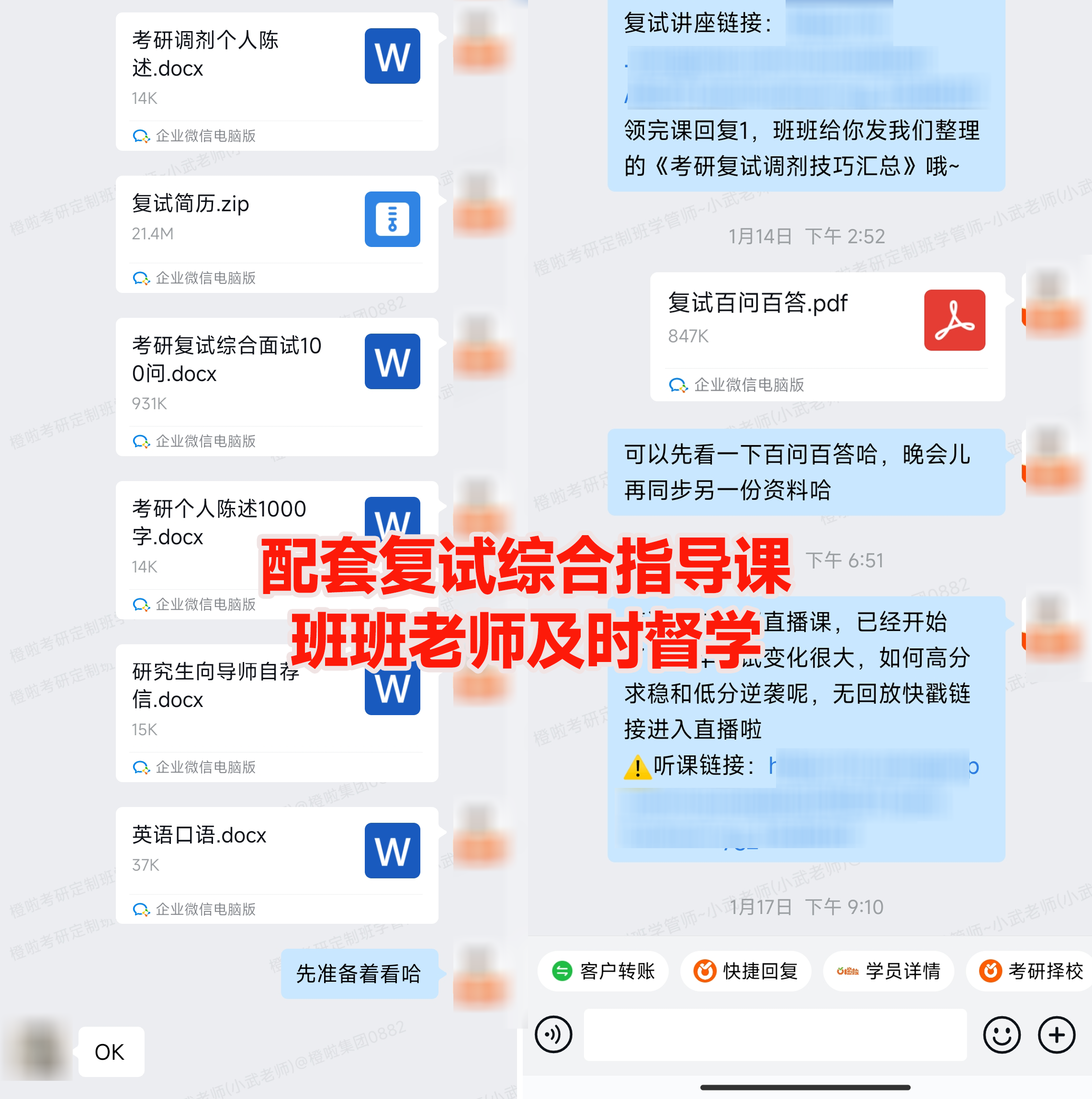 我的班班给我发了全面的资料,帮我梳理复试的要求、面试问题等,让我少走了很多弯路!