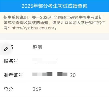 我本科就读于吉林医药学院心理学专业,今年以初试369分的成绩上岸北京师范大学心理学专业。