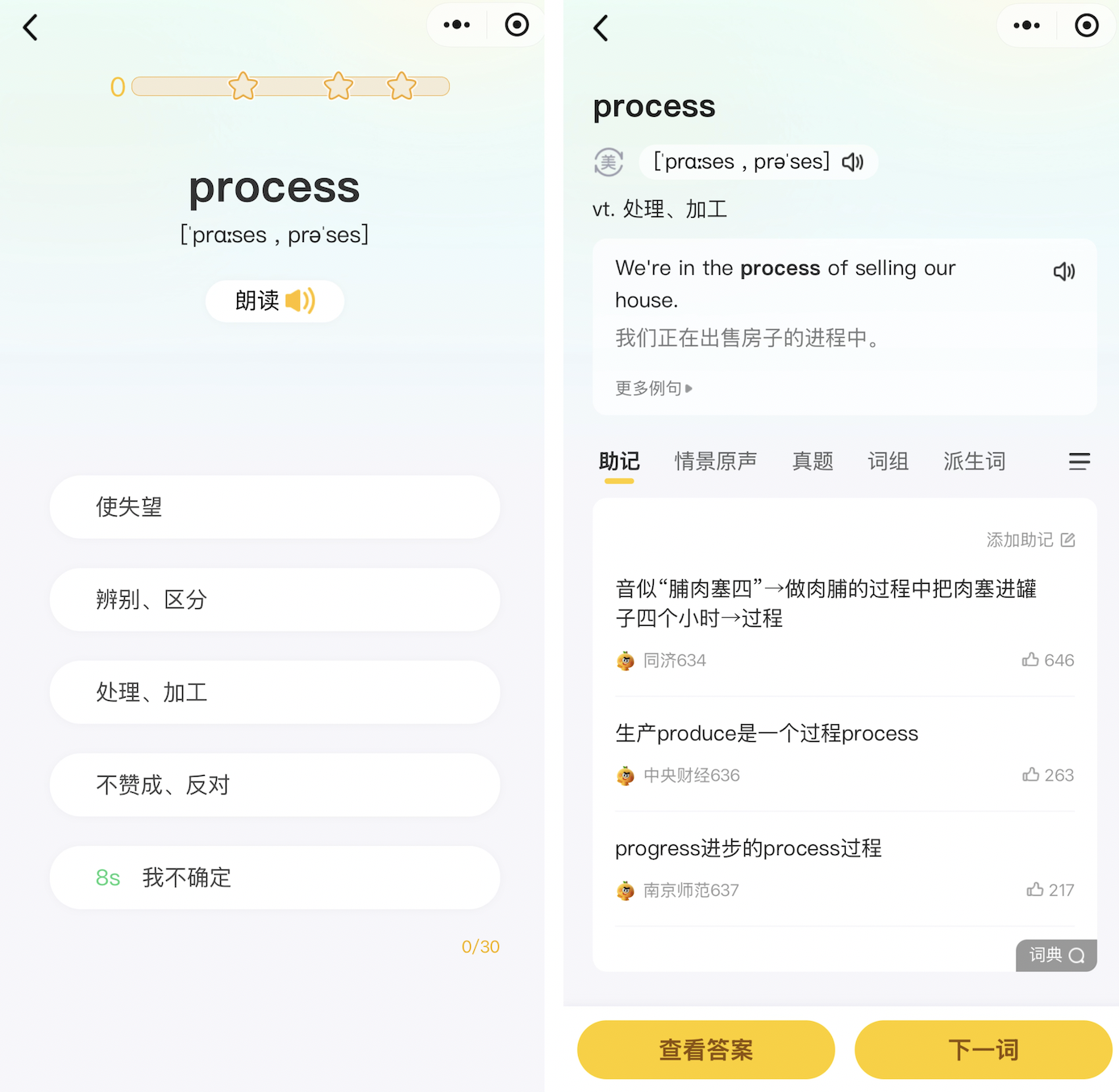 同时,前期阶段要注意打牢单词基础,备考的时候,我用的就是橙啦背单词小程序来学习,大家可以用它再结合艾宾浩斯曲线来记忆单词,通过至少五轮的词汇背诵,我发现阅读时的难度明显降低,感觉轻松多了。