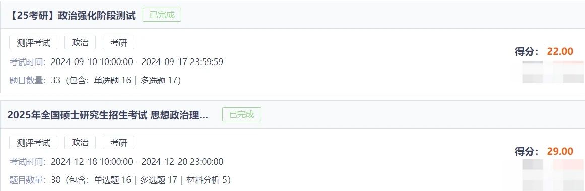 政治课程跟着攀攀学习,但是由于开始学习的时间相对较晚,导致我的分数并不理想,这让我深感遗憾。