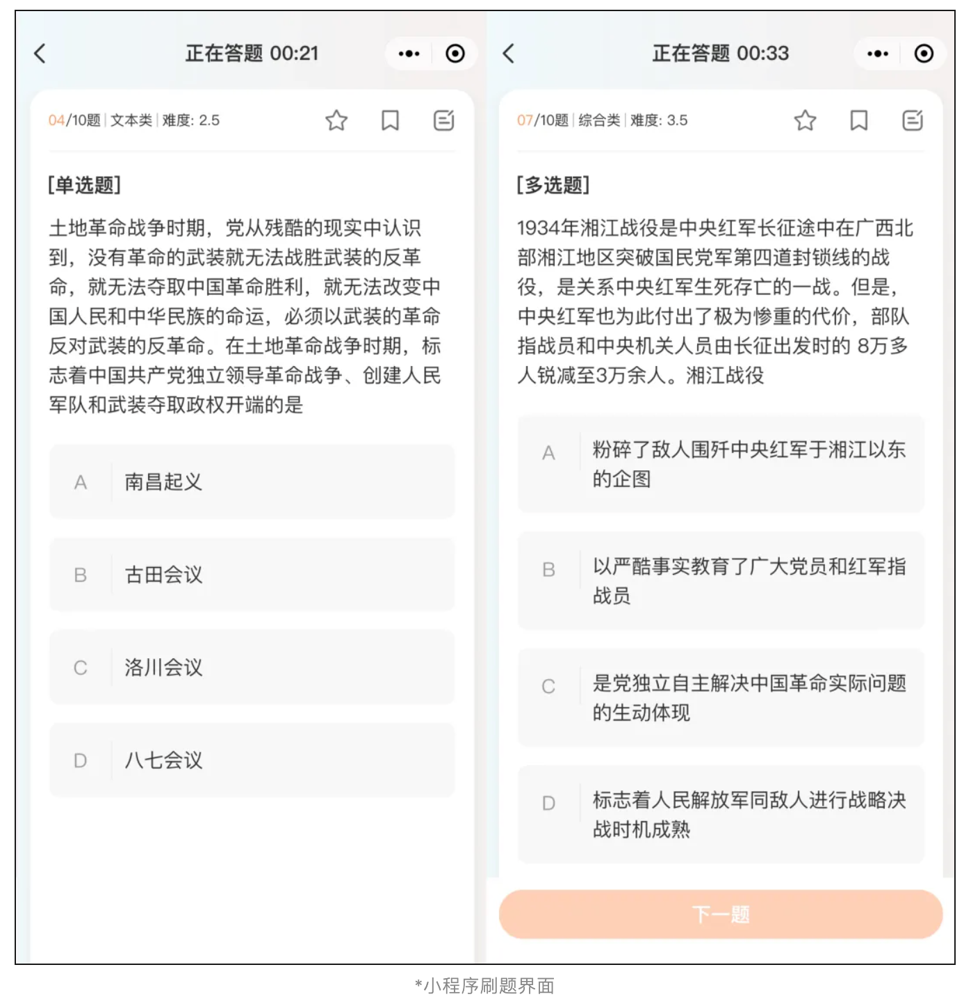 随着刷题量的逐渐累积,还能帮助你复盘全程的数据,刷题时做错的题,会自动纳入我们的错题集,错题集可以反复刷,用于理解参透考点。后期的正确率是否有提升?还有哪些重难点需要攻克?在小程序中都能一目了然。