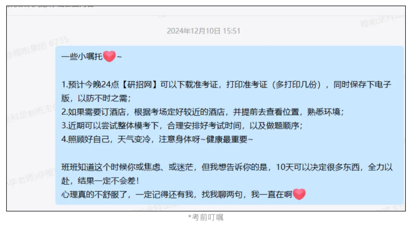 我也是综合对比后选择的橙啦,因为橙啦不仅会为每一个考生量身定制课程表和备考规划,更重要的是会有专属班班全年陪伴。